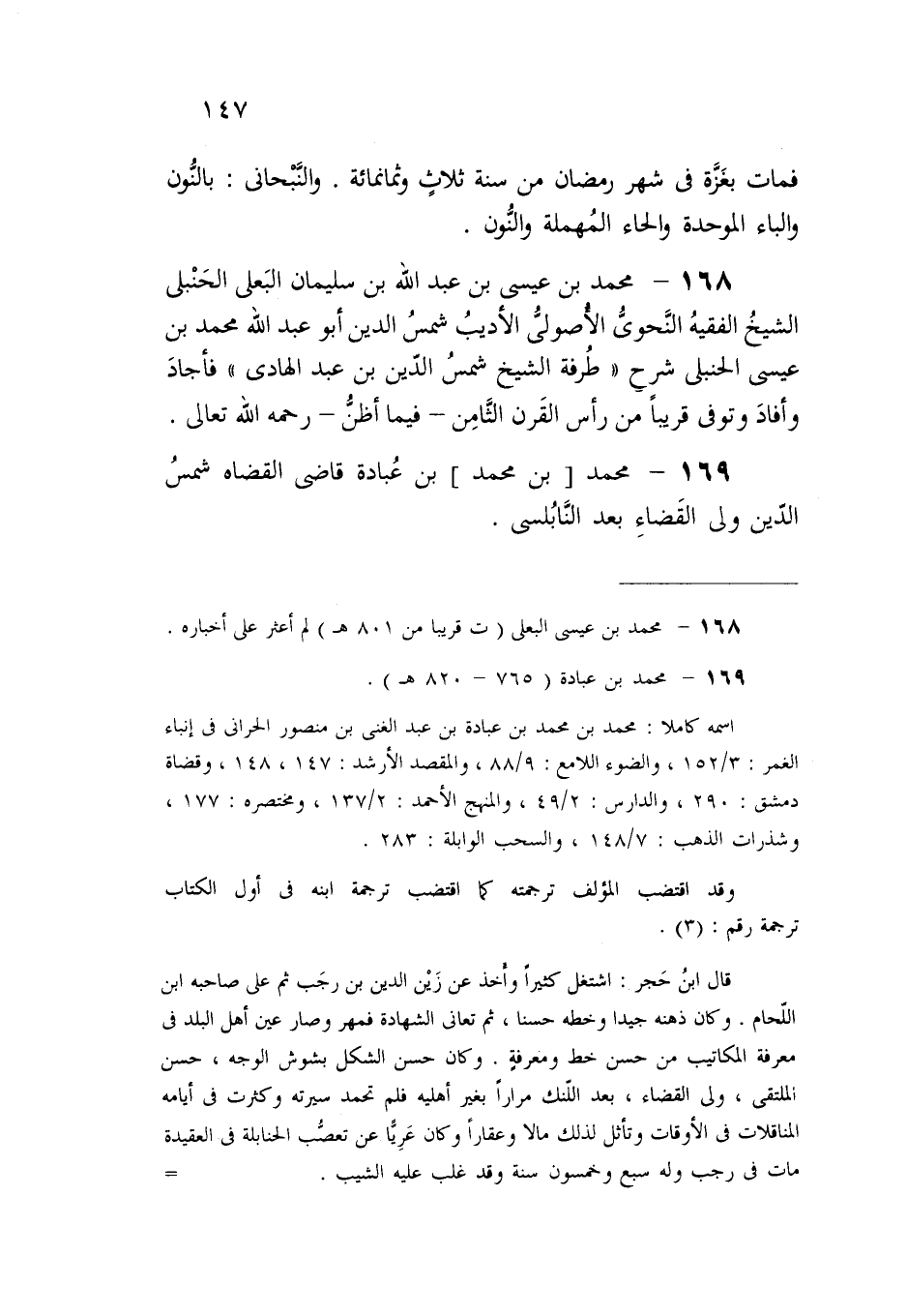 168 - محمد بن عيسى البعلى (ت قريبًا من 801 هـ) لم أعثر على أخباره.