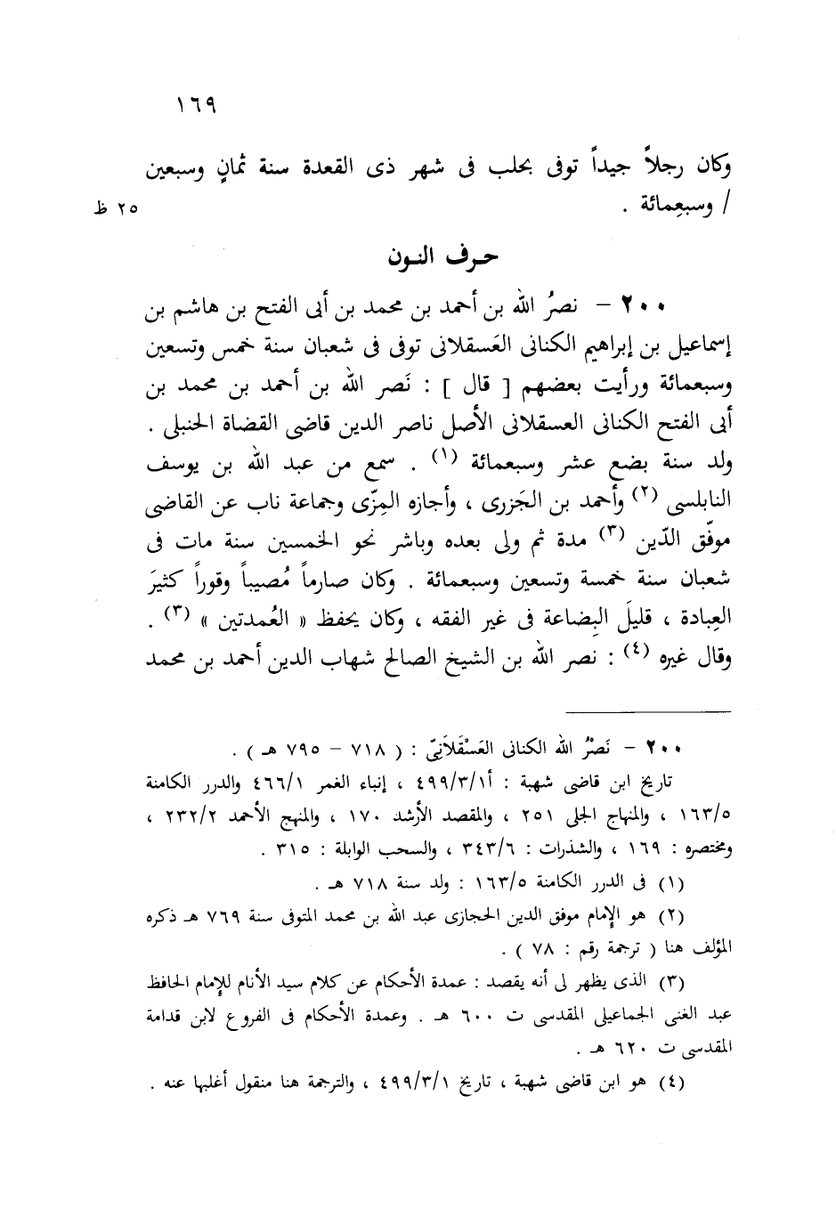 200 - نَصْرُ الله الكناني العَسْقَلَانِيِّ: (718 - 795 هـ).