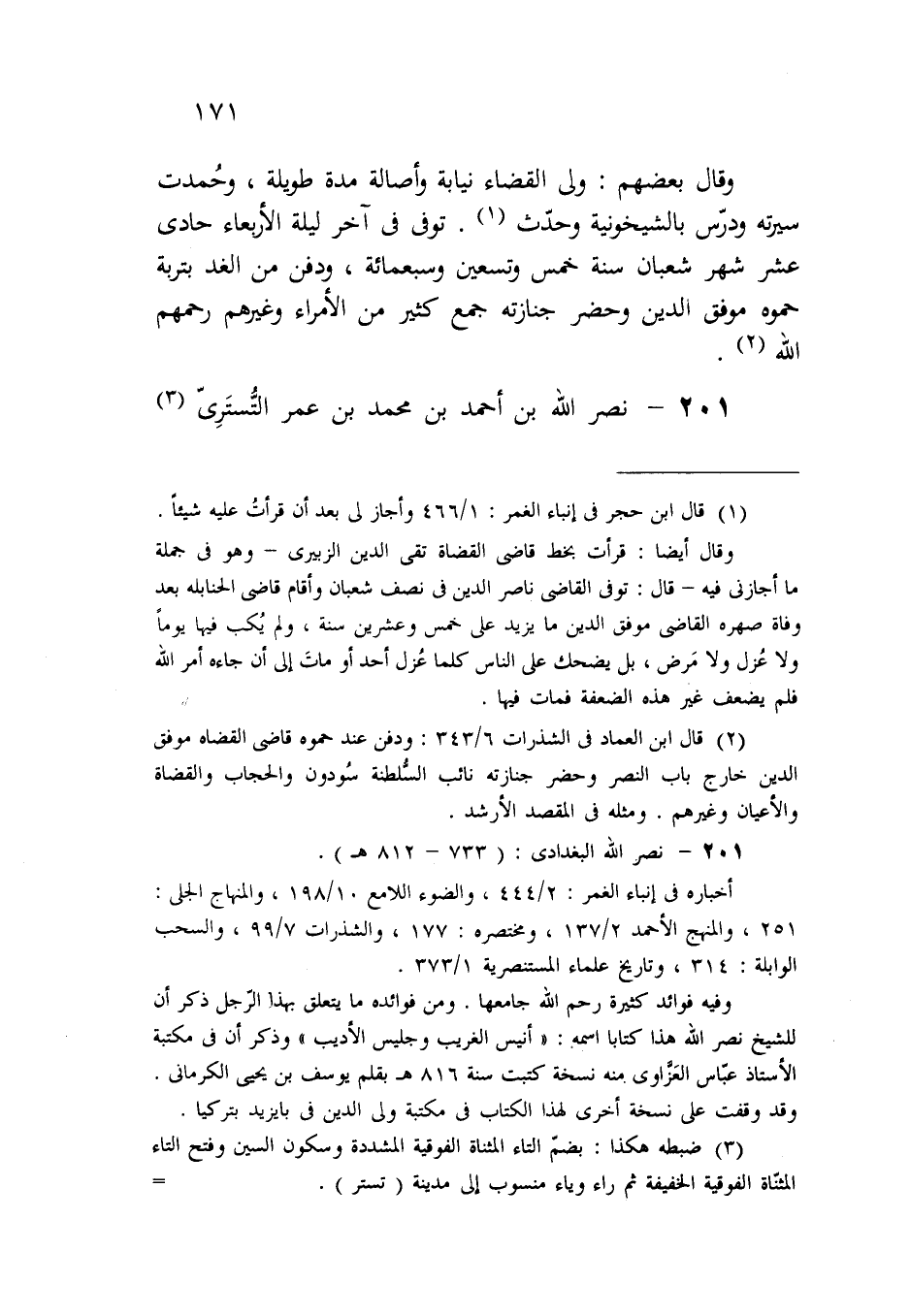 201 - نصر الله البغدادى: (733 - 812 هـ).