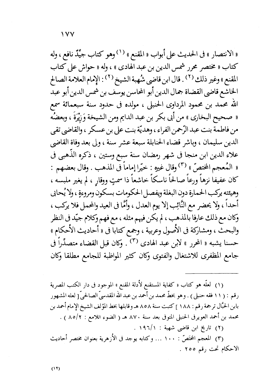 (¬1) لعلّه هو كتاب "كفاية المستقنع لأدلة المقنع" الموجود في دار الكتب المصرية رقم: (11 فقه حنبلى). وهو بخط محمد بن أحمد بن عبد الله المقدسي الصالحىّ [لعله المشهور بابن الحبَّال ترجمة رقم: 188] كتبت سنة 858 هـ وقابلها بخط المؤلف الشيخ الإِمام أحمد بن محمد بن أحمد العريرفى الحنبلى المتوفى بعد سنة 870 هـ (الضوء اللامع: 2/ 85).