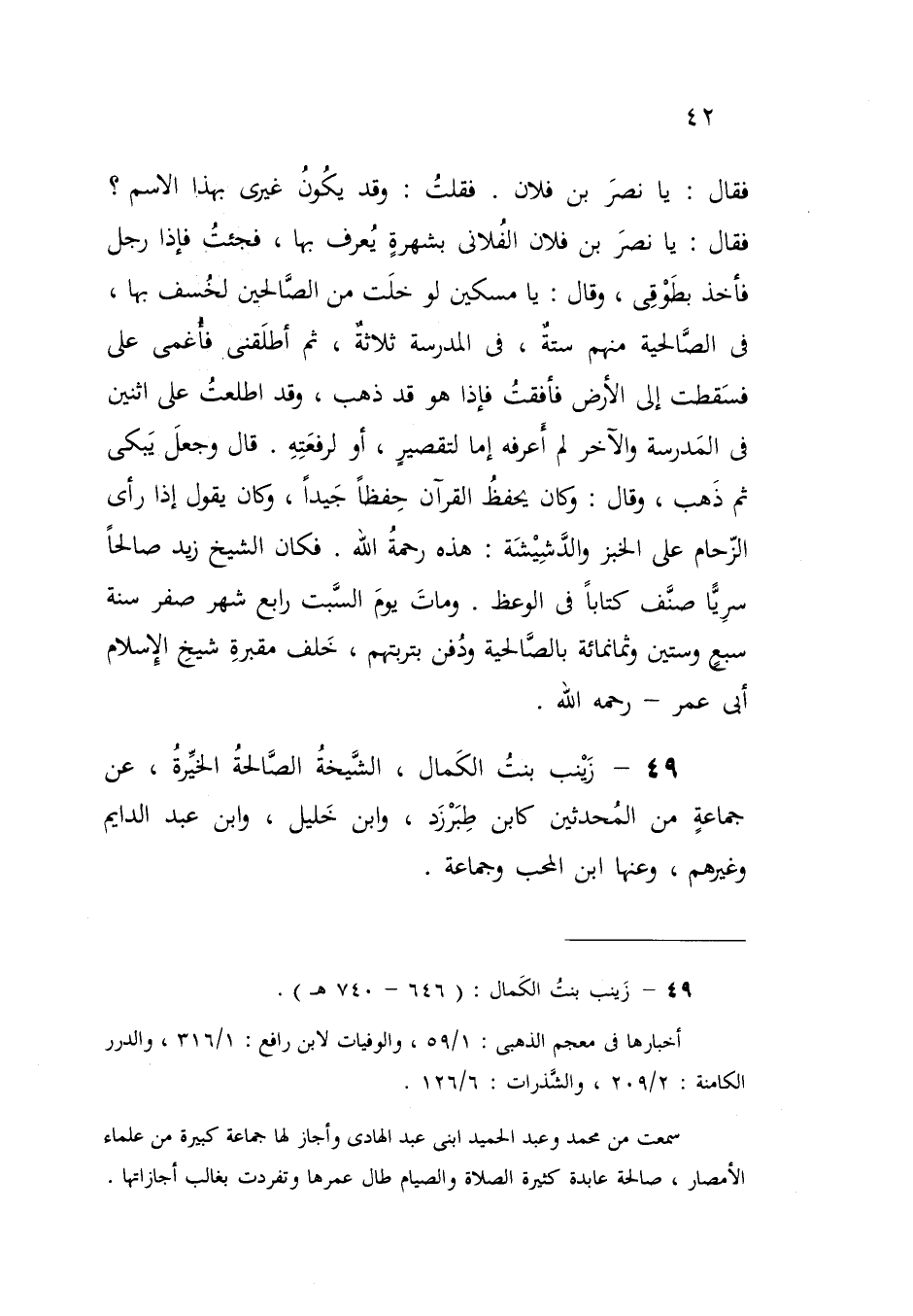 49 - زَيْنب بنتُ الكَمال، الشَّيخةُ الصَّالحةُ الخيِّرةُ، عن جماعةٍ من المُحدثين كابن طِبَرْزَد، وابن خَليل، وابن عبد الدايم وغيرهم، وعنها ابن المحب وجماعة.
