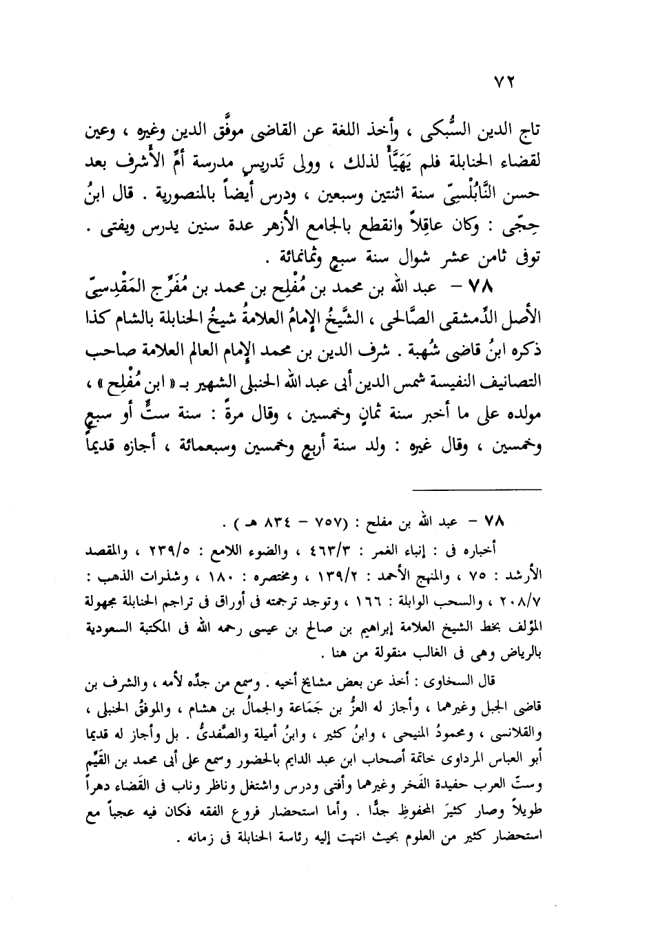 78 - عبد الله بن مفلح: (757 - 834 هـ).