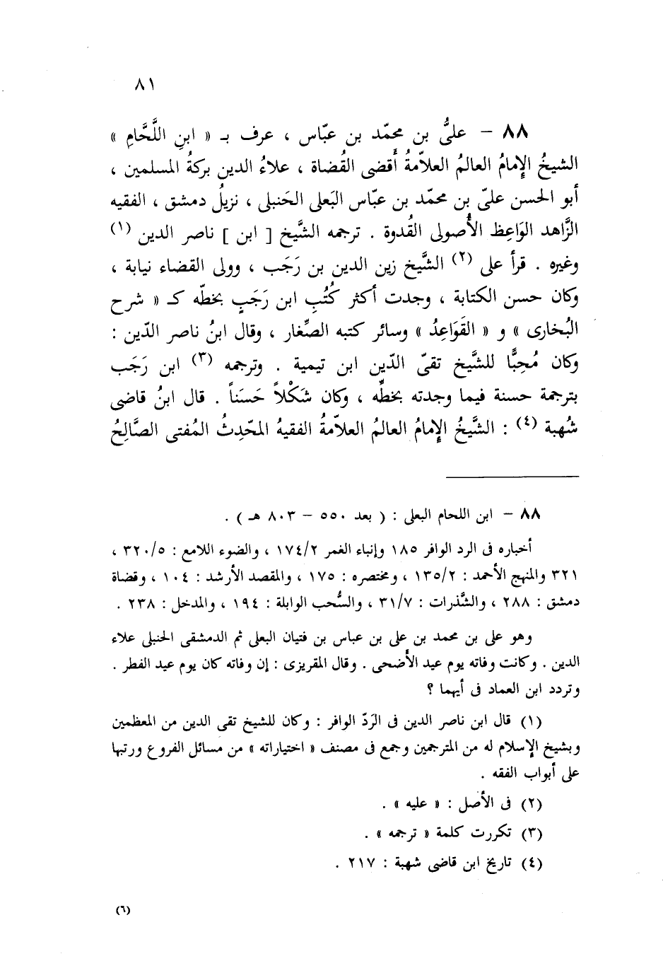 88 - ابن اللحام البعلى: (بعد 550 - 803 هـ).
