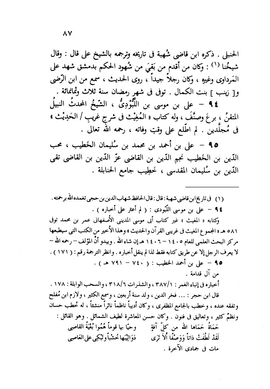 95 - على بن أحمد بن محمد بن سُليمان الخَطيب، محب الدّين بن الخَطيب نجمِ الدّين بن القاضى عزّ الدّين بن القاضى تقى الدّين بن سُليمان المقدسى، خَطِب جامع الحنابلة.