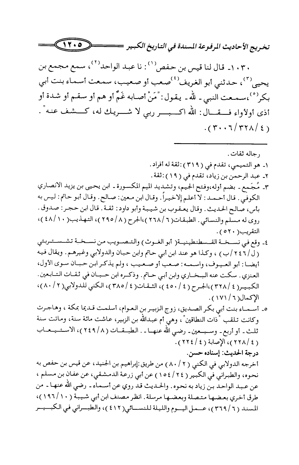 كتاب تخريج الأحاديث المرفوعة المسندة في كتاب التاريخ الكبير للبخاري