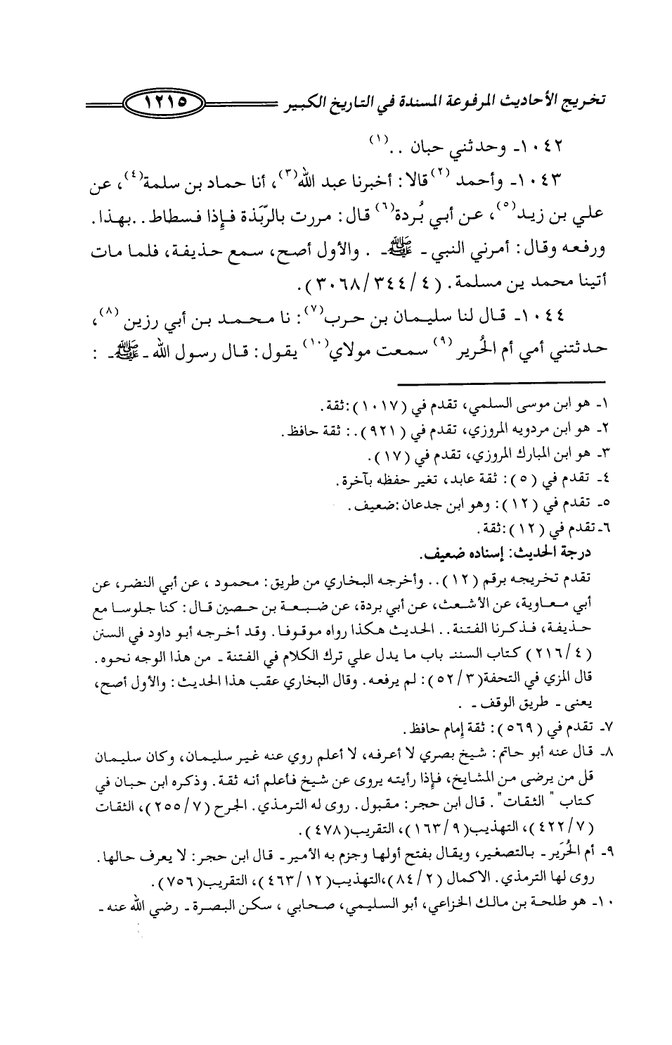 كتاب تخريج الأحاديث المرفوعة المسندة في كتاب التاريخ الكبير للبخاري