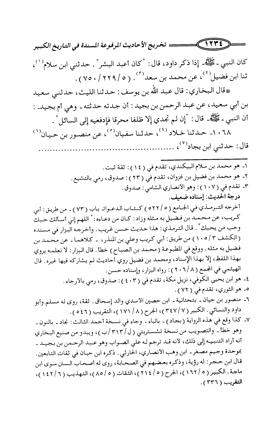 كتاب تخريج الأحاديث المرفوعة المسندة في كتاب التاريخ الكبير للبخاري