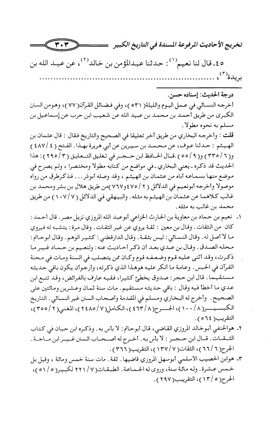 كتاب تخريج الأحاديث المرفوعة المسندة في كتاب التاريخ الكبير للبخاري