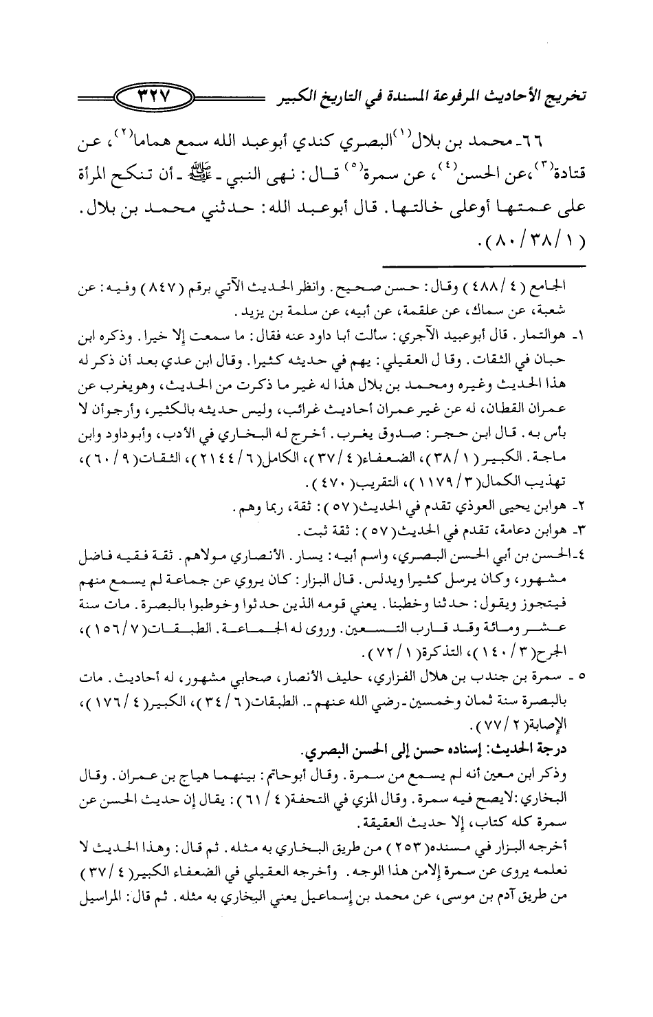 كتاب تخريج الأحاديث المرفوعة المسندة في كتاب التاريخ الكبير للبخاري