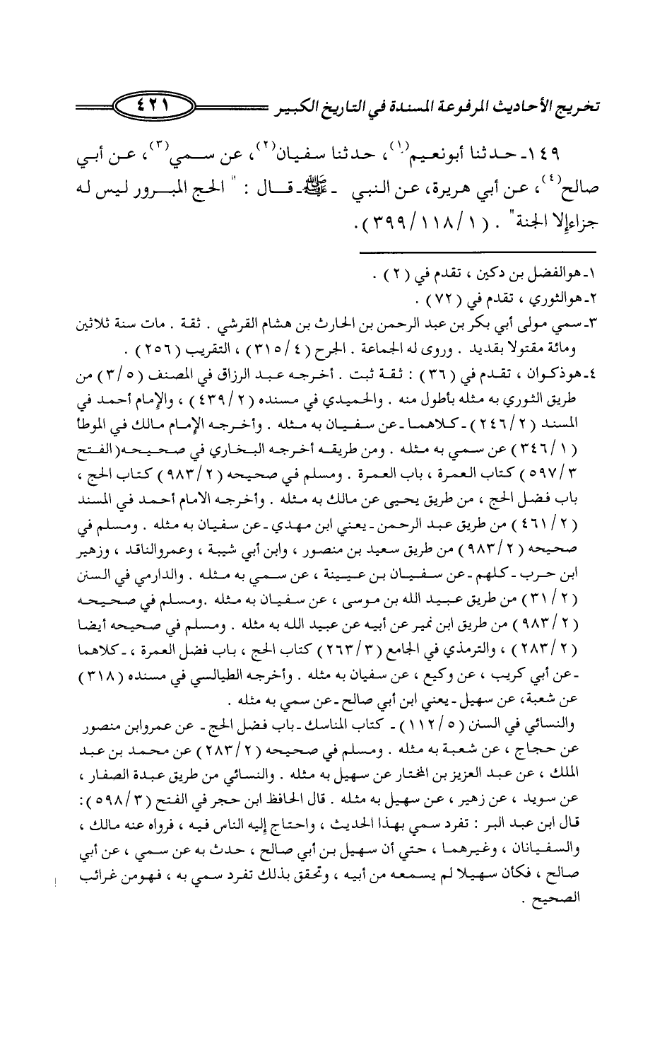 107 - حَدَّثَنَا أَبُو نُعَيْمٍ، حَدَّثَنَا سُفْيَانُ، عَنْ سُمَيٍّ، عَنْ أَبِي صَالِحٍ، عَنْ أَبِي هُرَيْرَةَ، عَنِ النَّبِيِّ صَلَّى اللَّهُ عَلَيْهِ وَسَلَّمَ قَالَ: «§الْحَجُّ الْمَبْرُورُ لَيْسَ لَهُ جَزَاءٌ إِلَّا الْجَنَّةُ»