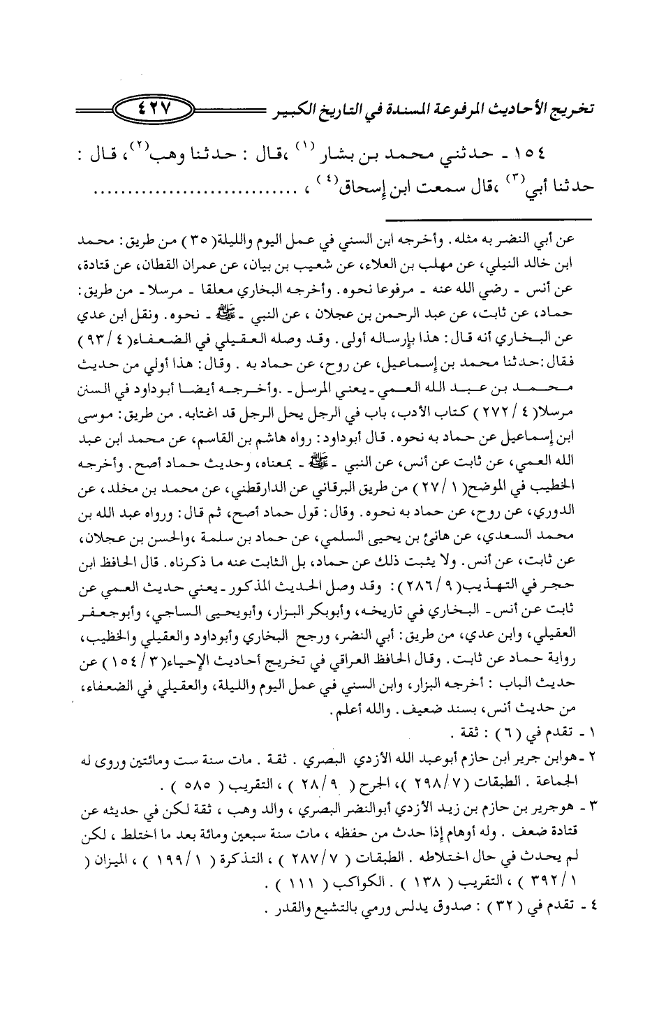 كتاب تخريج الأحاديث المرفوعة المسندة في كتاب التاريخ الكبير للبخاري