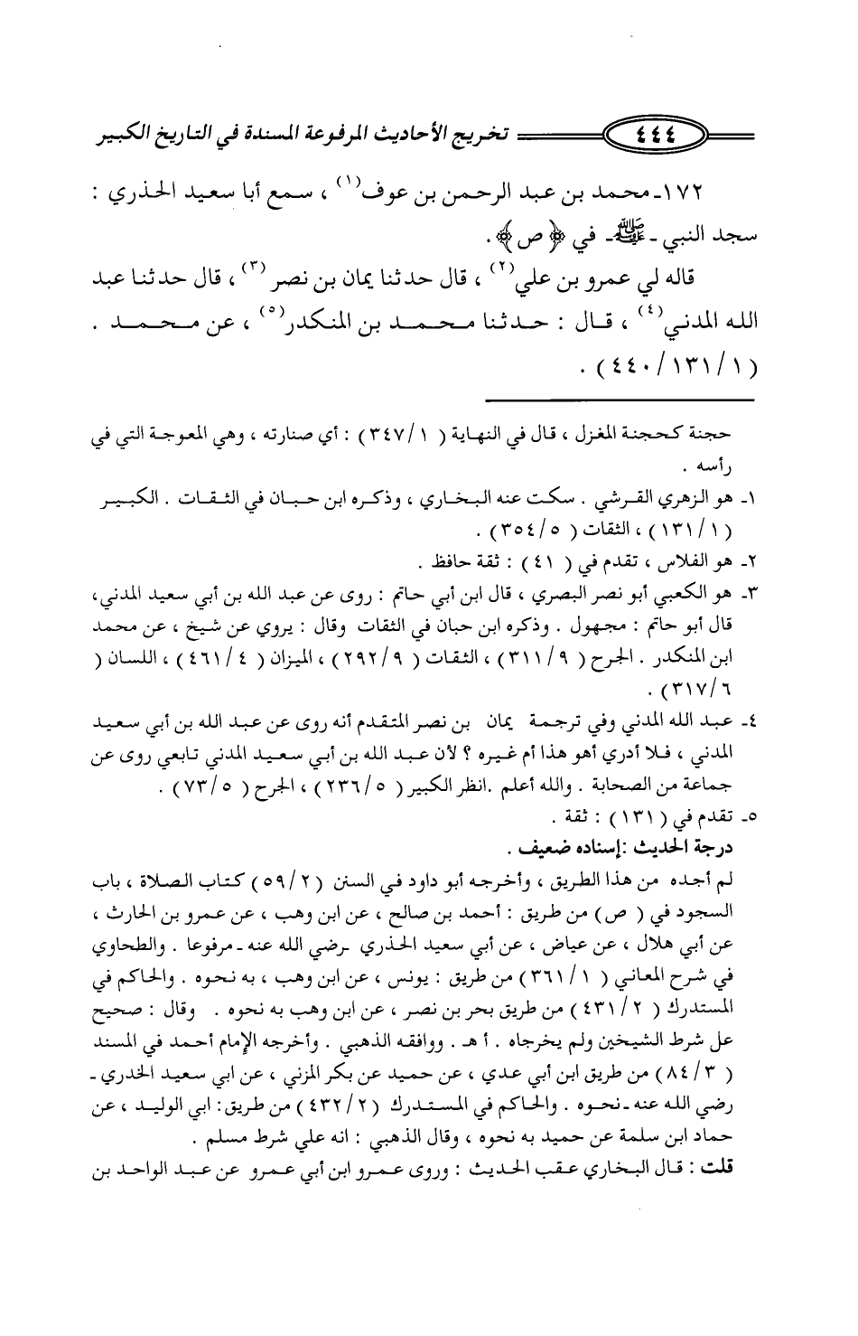 كتاب تخريج الأحاديث المرفوعة المسندة في كتاب التاريخ الكبير للبخاري
