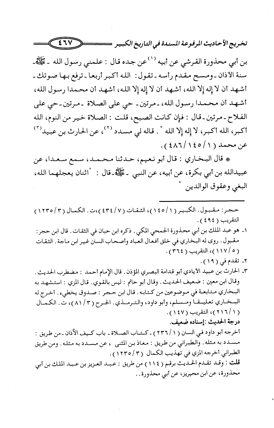 كتاب تخريج الأحاديث المرفوعة المسندة في كتاب التاريخ الكبير للبخاري