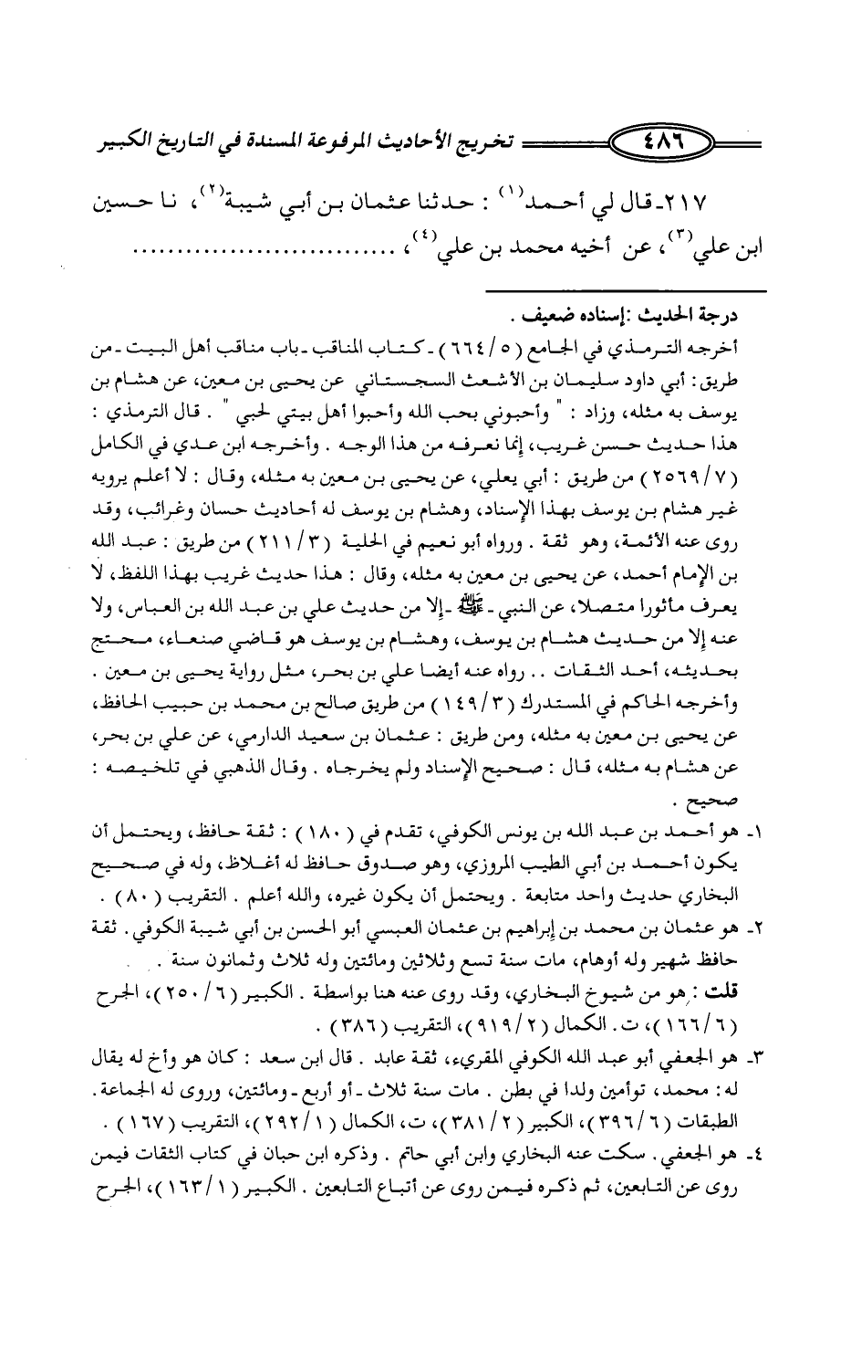 كتاب تخريج الأحاديث المرفوعة المسندة في كتاب التاريخ الكبير للبخاري