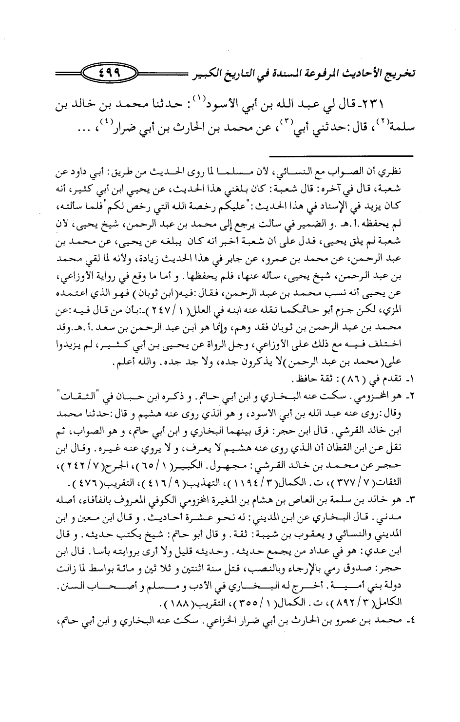 كتاب تخريج الأحاديث المرفوعة المسندة في كتاب التاريخ الكبير للبخاري