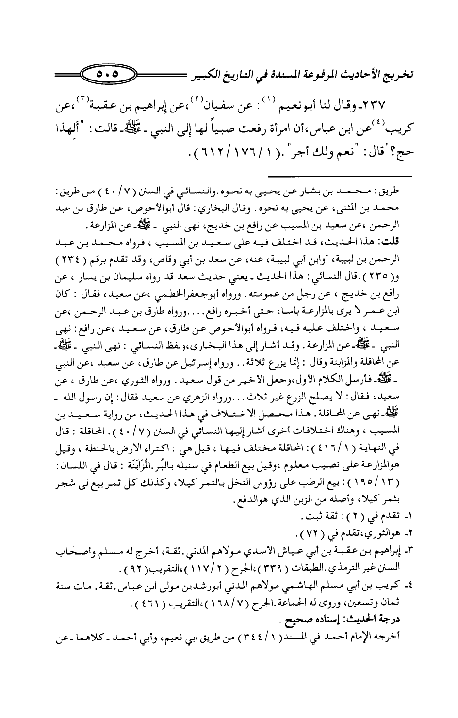 170 - وَقَالَ لَنَا أَبُو نُعَيْمٍ: عَنْ سُفْيَانَ، عَنْ إِبْرَاهِيمَ بْنِ عُقْبَةَ، عَنْ كُرَيْبٍ، عَنِ ابْنِ عَبَّاسٍ، أَنَّ §امْرَأَةً رَفَعَتْ صَبِيًّا لَهَا إِلَى النَّبِيِّ صَلَّى اللَّهُ عَلَيْهِ وَسَلَّمَ، فَقَالَتْ: أَلِهَذَا حَجٌّ؟ قَالَ: «نَعَمْ وَلَكِ أَجْرٌ» -[506]- وَقَالَ لَنَا قَبِيصَةُ: عَنْ سُفْيَانَ، عَنْ مُحَمَّدِ بْنِ عُقْبَةَ، عَنْ كُرَيْبٍ، عَنِ ابْنِ عَبَّاسٍ، عَنِ النَّبِيِّ صَلَّى اللَّهُ عَلَيْهِ وَسَلَّمَ مِثْلَهُ. -[507]- وَقَالَ لِي مُحَمَّدٌ: حَدَّثَنِي يَحْيَى، عَنْ سُفْيَانَ، عَنْ مُحَمَّدِ بْنِ عُقْبَةَ، عَنْ كُرَيْبٍ، عَنِ ابْنِ عَبَّاسٍ، عَنِ النَّبِيِّ صَلَّى اللَّهُ عَلَيْهِ وَسَلَّمَ. وَحَدَّثَنِي مُحَمَّدٌ، قَالَ: ثنا يَعْلَى، قَالَ: حَدَّثَنَا ابْنُ إِسْحَاقَ، عَنْ إِبْرَاهِيمَ، عَنْ كُرَيْبٍ، عَنِ ابْنِ عَبَّاسٍ، عَنِ النَّبِيِّ صَلَّى اللَّهُ عَلَيْهِ وَسَلَّمَ