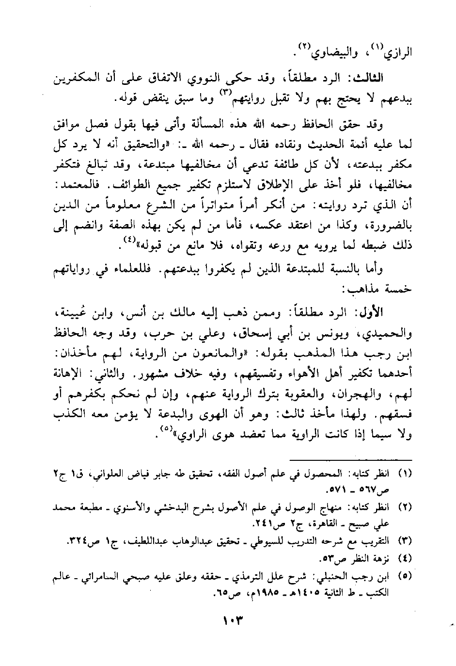 (¬5) ابن رجب الحنبلي: شرح علل الترمذي - حققه وعلق عليه صبحي السامرائي - عالم الكتب - ط الثانية 1405هـ - 1985م، ص65.