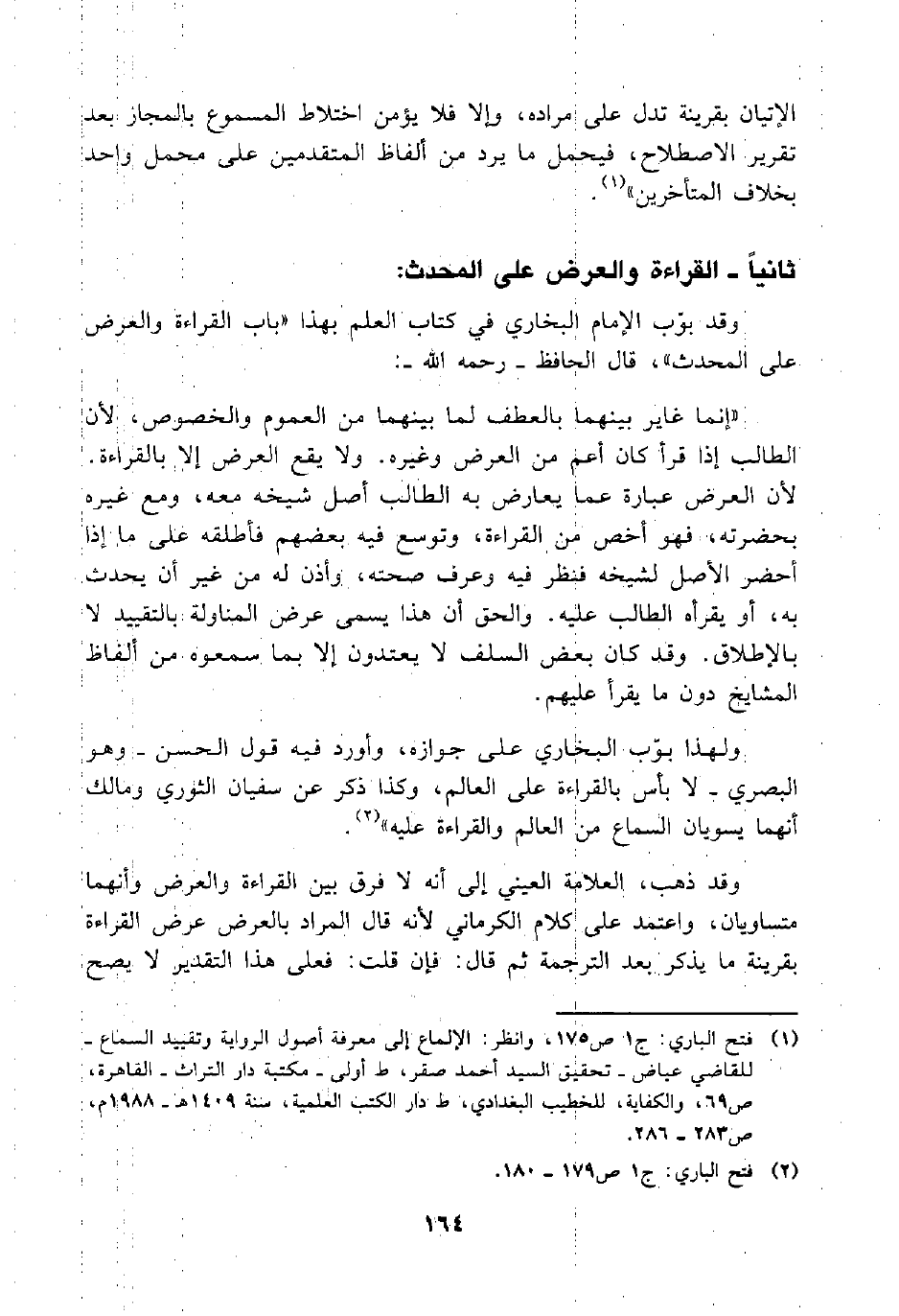 (¬1) فتح الباري: ج1 ص175، وانظر: الإلماع إلى معرفة أصول الرواية وتقييد السماع - للقاضي عياض - تحقيق السيد أحمد صقر، ط أولى - مكتبة دار التراث - القاهرة، ص69، والكفاية، للخطيب البغدادي، ط دار الكتب العلمية، سنة 1409هـ - 1988م، ص283 - 286.