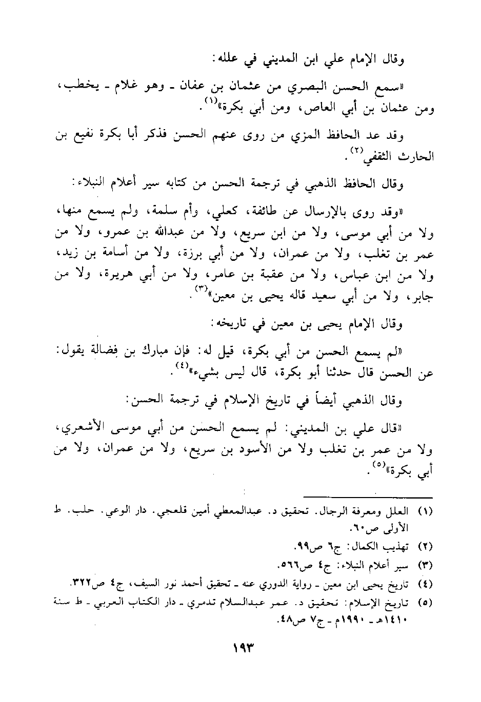 (¬1) العلل ومعرفة الرجال. تحقيق د. عبد المعطي أمين قلعجي. دار الوعي. حلب. ط الأولى ص60.