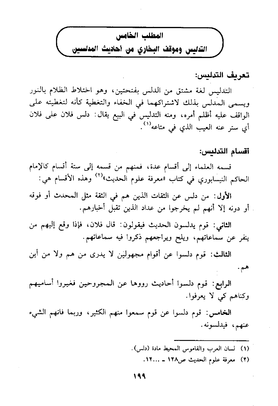 المطلب الخامس: التدليس وموقف البخاري من أحاديث المدلسين