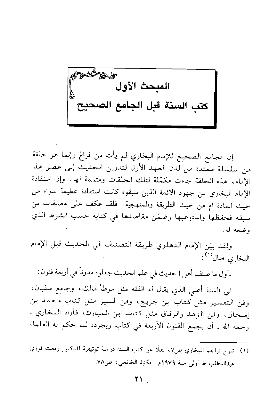 (¬1) شرح تراجم البخاري ص7، نقلاً عن كتب السنة دراسة توثيقية للدكتور رفعت فوزي عبد المطلب ط أولى سنة 1979م - مكتبة الخانجي، ص 78.