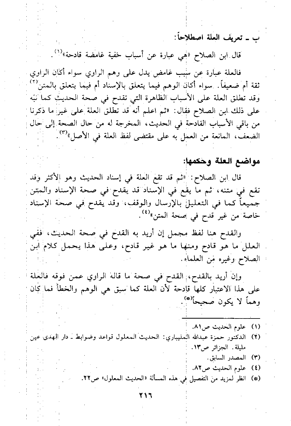 (*) انظر لمزيد من التفصيل في هذه المسألة "الحديث المعلول" ص22.