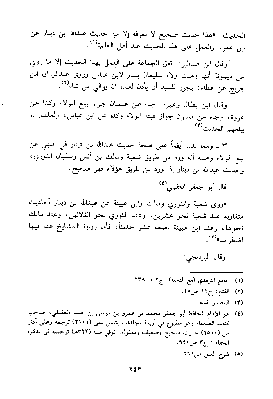 3- ومما يدل أيضاً على صحة حديث عبد الله بن دينار في النهي عن بيع الولاء وهبته أنه ورد من طريق شعبة ومالك بن أنس وسفيان الثوري، وحديث عبد الله بن دينار إذا ورد من طريق هؤلاء فهو صحيح.