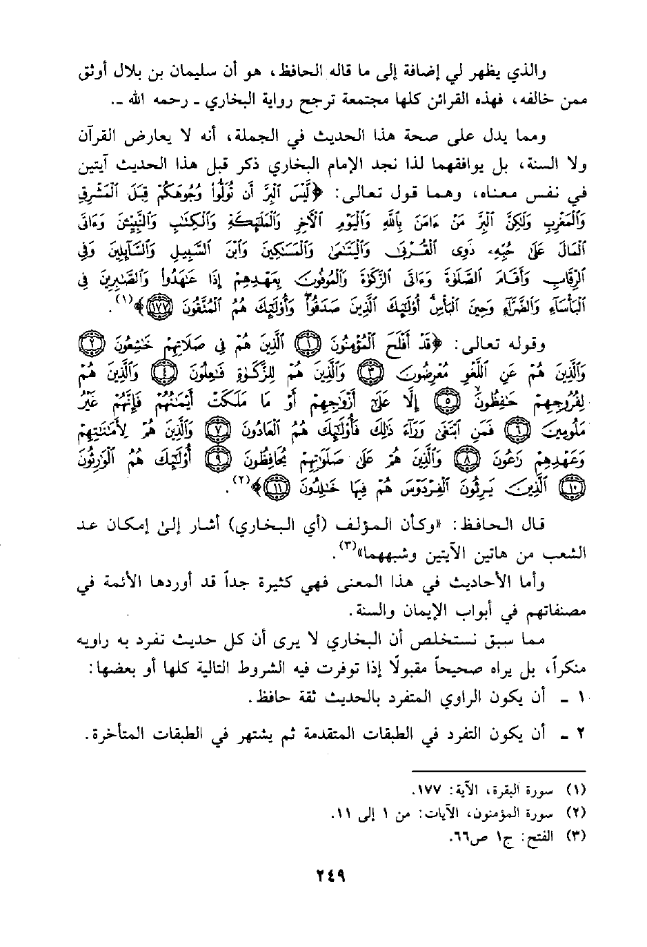 ومما يدل على صحة هذا الحديث في الجملة، أنه لا يعارض القرآن ولا السنة، بل يوافقهما لذا نجد الإمام البخاري ذكر قبل هذا الحديث آيتين في نفس معناه، وهما قول تعالى: {ليس البر أن تولوا وجوهكم قبل المشرق والمغرب ولكن البر من آمن بالله واليوم الآخر والملائكة والكتاب والنبيين وأتى المال على حبه ذوي القربى واليتامى والمساكين وابن السبيل والسائلين وفي الرقاب وأقام الصلاة وأتى الزكاة والموفون بعهدهم إذا عهدوا والصابرين في البأساء والضراء وحين البأس أولئك الذين صدقوا وأولئك هم المتقون} (¬1) .