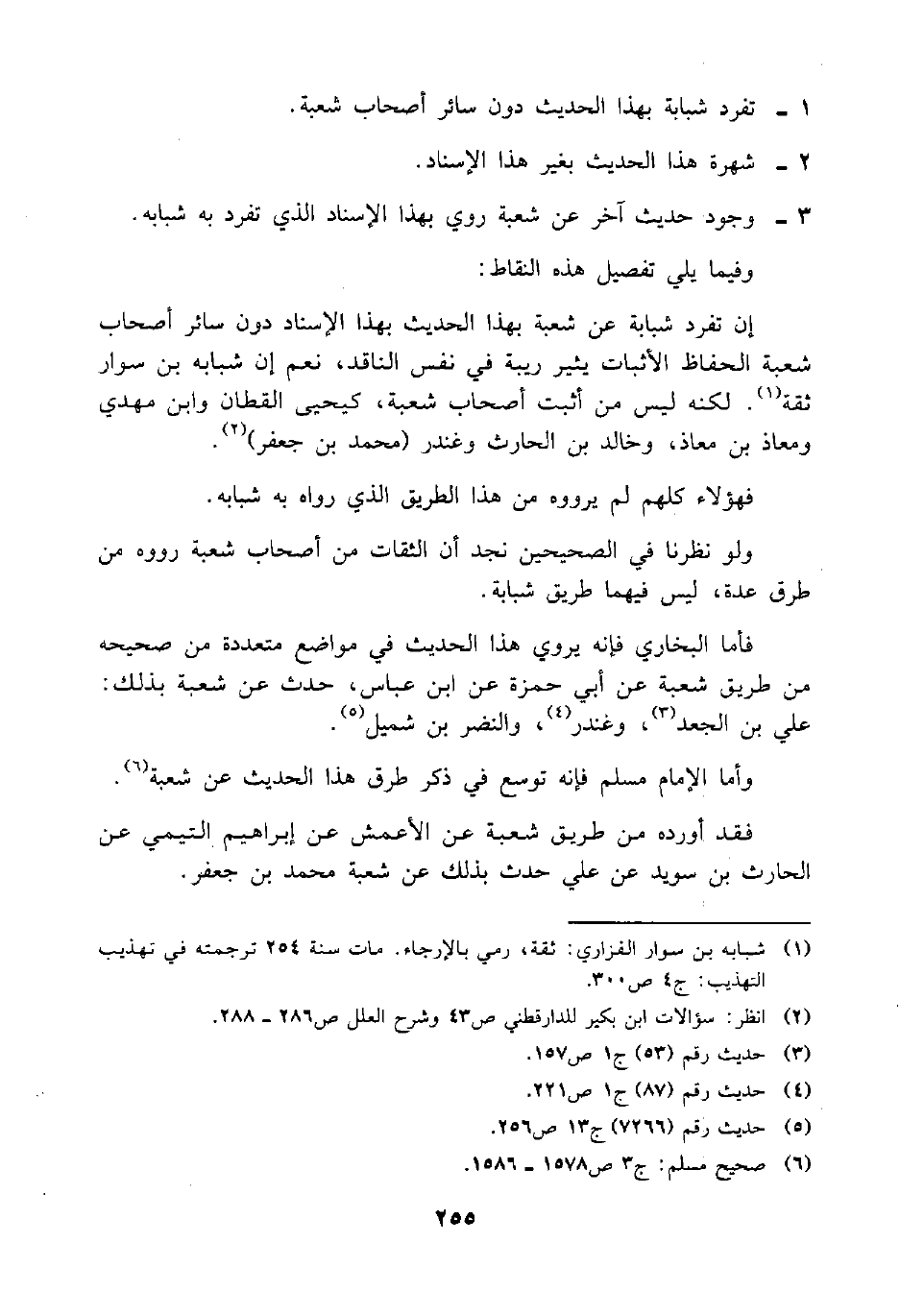ولو نظرنا في الصحيحين نجد أن الثقات من أصحاب شعبة رووه من طرق عدة، ليس فيهما طريق شبابة.