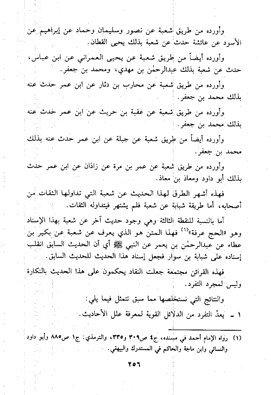 أما بالنسبة للنقطة الثالثة وهي وجود حديث آخر عن شعبة بهذا الإسناد وهو "الحج عرفة" (¬1) فهذا المتن هو الذي يعرف عن شعبة عن بكير بن عطاء عن عبد الرحمن بن يعمر عن النبي صلى الله عليه وسلم أي أن الحديث السابق انقلب إسناده على شبابة بن سوار فجعل إسناد هذا الحديث للحديث السابق.