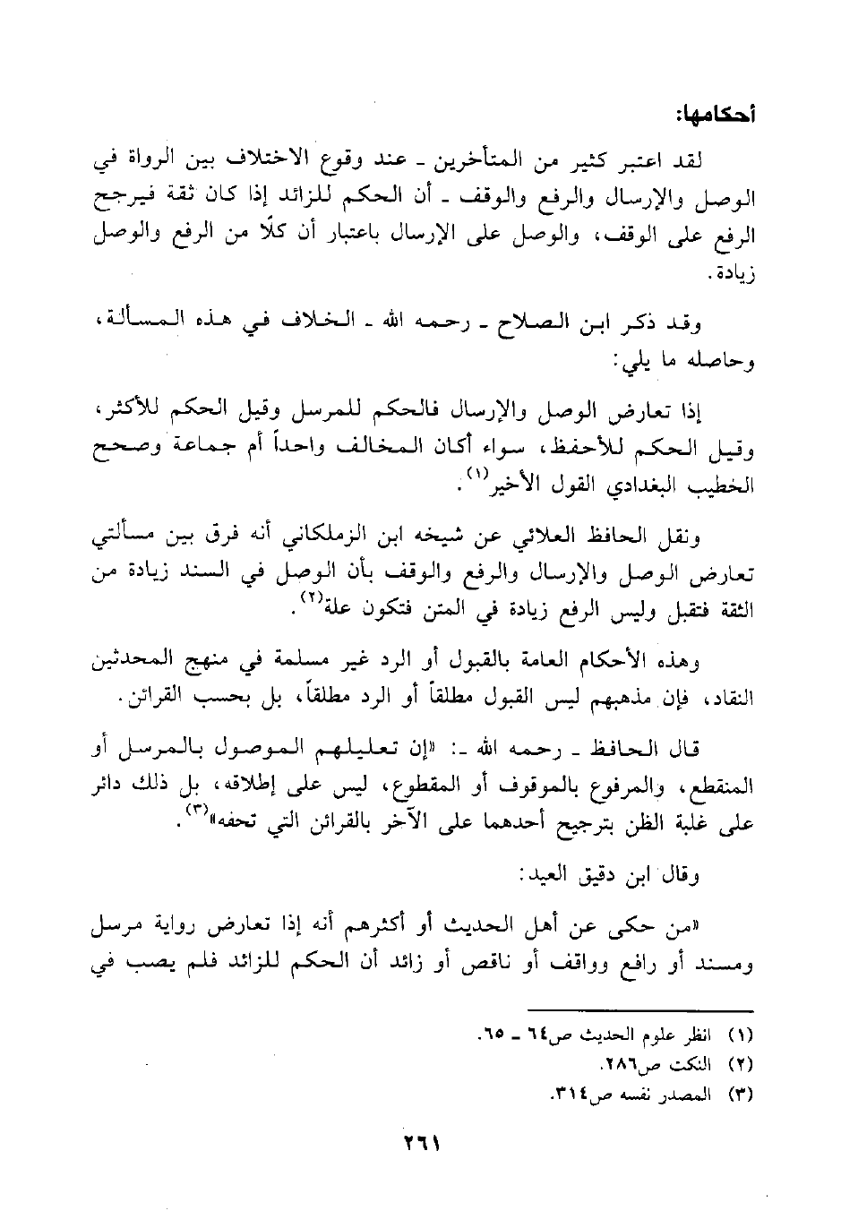 وقد ذكر ابن الصلاح - رحمه الله - الخلاف في هذه المسألة، وحاصله ما يلي: