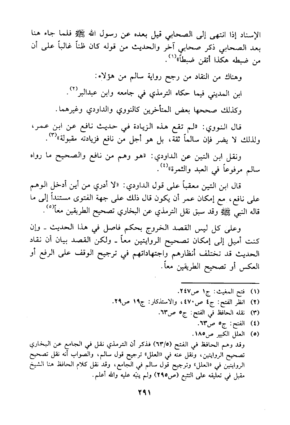 ود وهم الحافظ في الفتح (5/63) فذكر أن الترمذي نقل في الجامع عن البخاري تصحيح الروايتين، ونقل عنه في "العلل" ترجيح قول سالم، والصواب أنه نقل تصحيح الروايتين في "العللط وترجيح قول سالم في الجامع، وقد نقل كلام الحافظ هنا الشيخ مقبل في تعليقه على التتبع (ص295) ولم ينبه عليه والله أعلم.