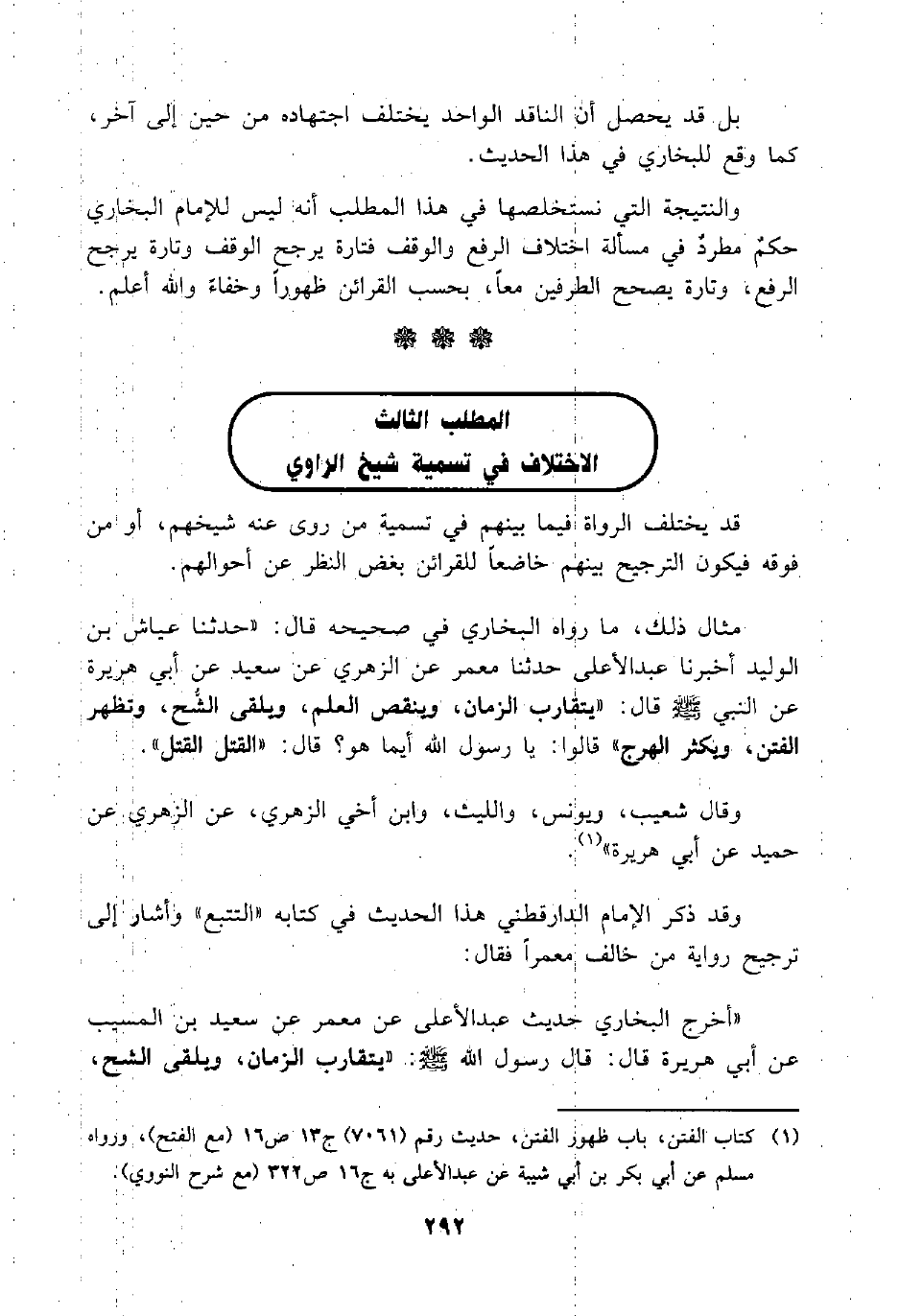 (¬1) كتاب الفتن، باب ظهور الفتن، حديث رقم (7061) ج13 ص16 (مع الفتح) ، ورواه مسلم عن أبي بكر بن أبي شبية عن عبد الأعلى به ج16 ص322 (مع شرح النووي) .