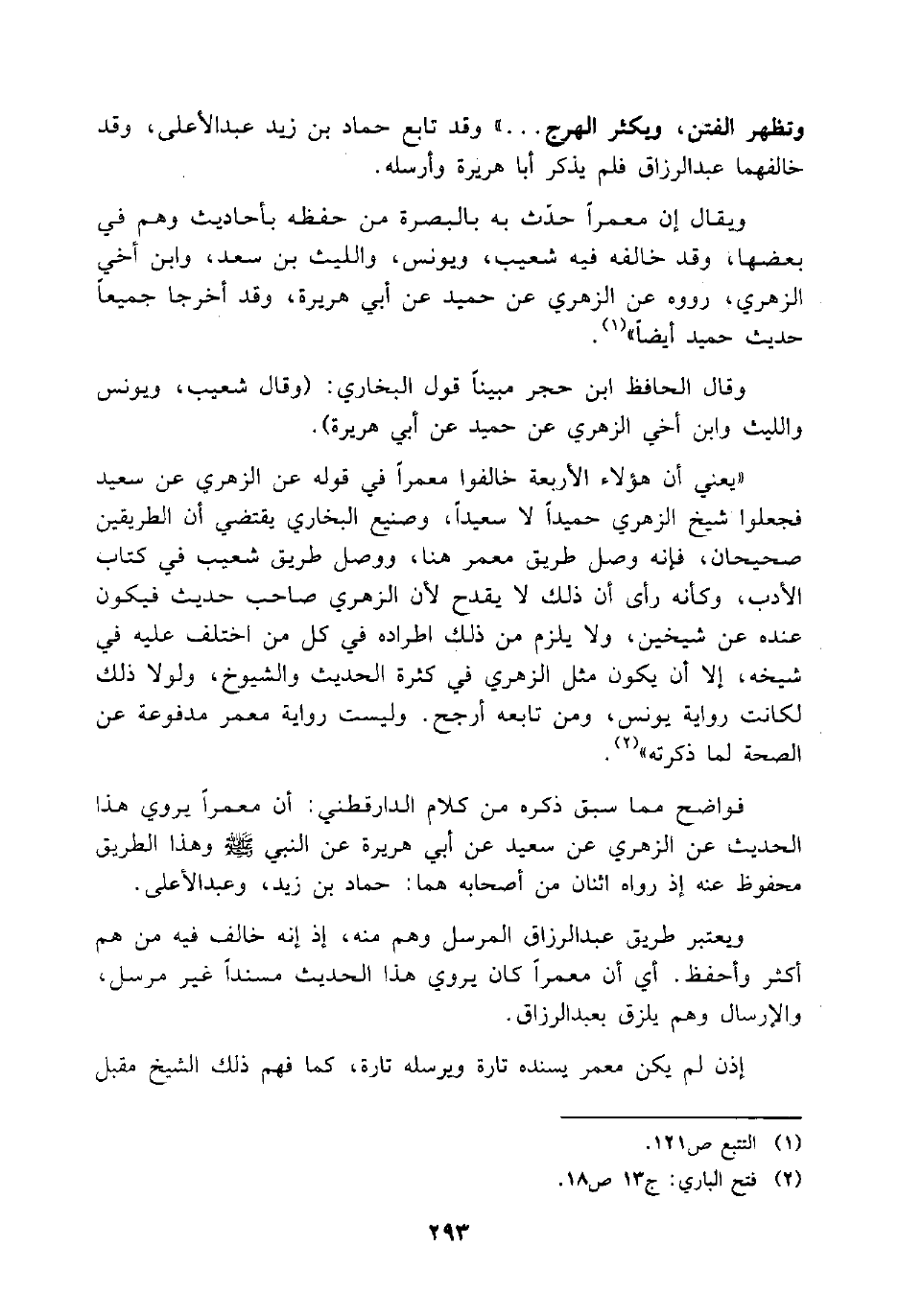 وتظهر الفتن، ويكثر الهرج" وقد تابع حماد بن زيد عبد الأعلى، وقد خالفهما عبد الرزاق فلم يذكر أبا هريرة وأرسله.