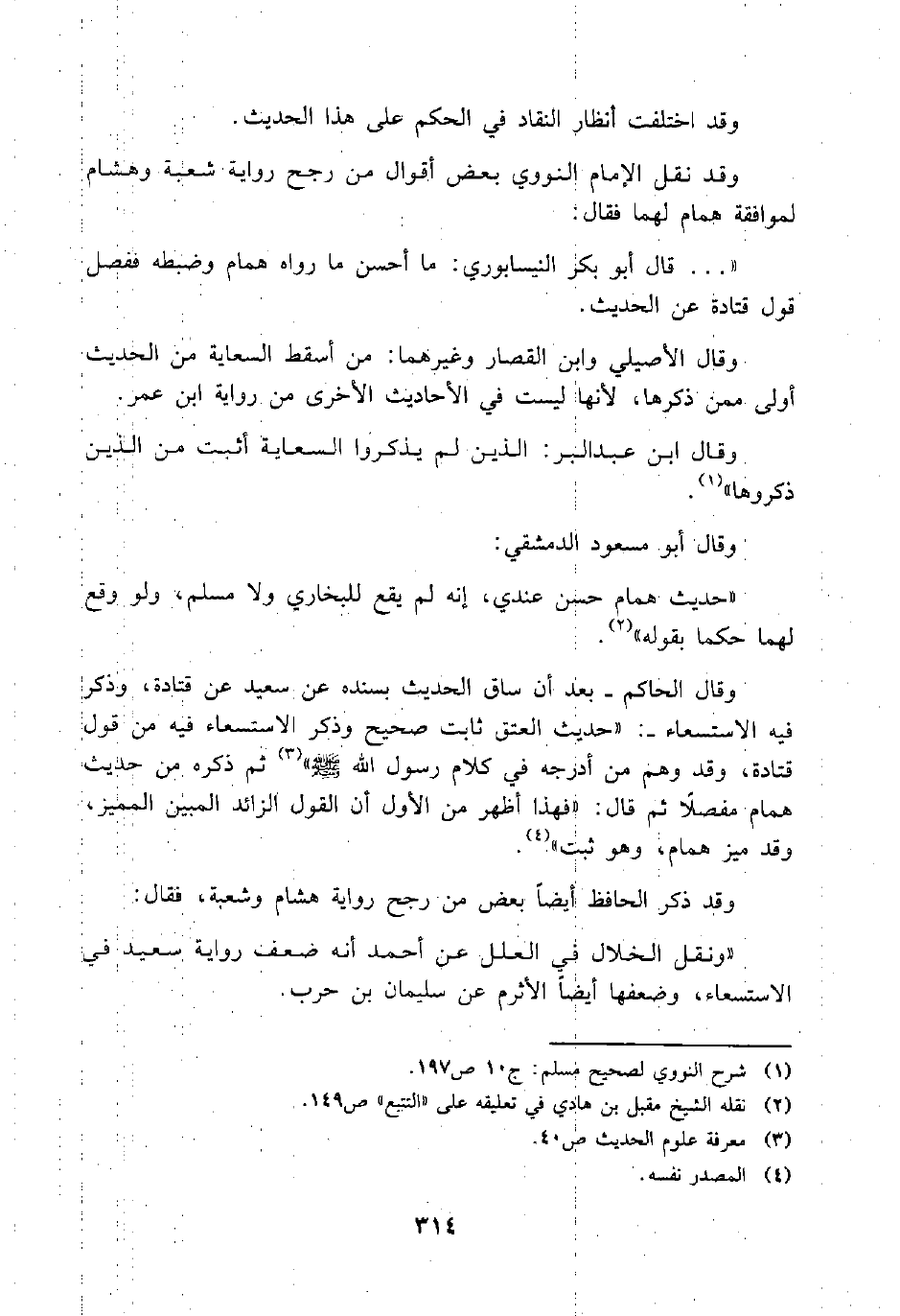 وقد نقل الإمام النووي بعض أقوال من رجح رواية شعبة وهشام لموافقة همام لهما فقال: