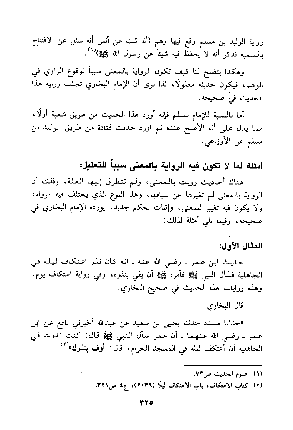 أمثلة لما لا تكون فيه الرواية بالمعنى سبباً للتعيل: