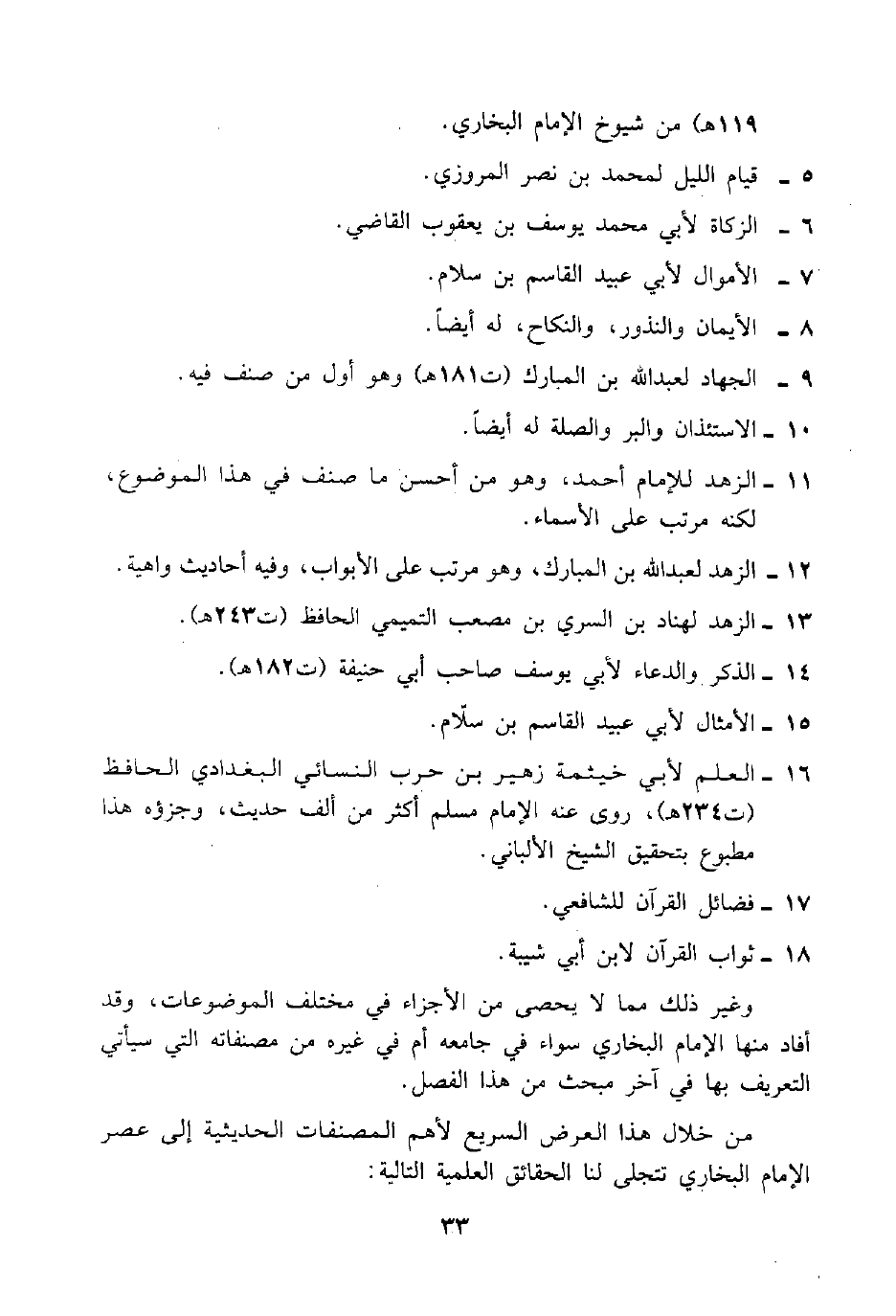 16) العلم لأبي خيثمة زهير بن حرب النسائي البغدادي الحافظ (ت 234هـ) روى عنه الإمام مسلم أكثر من ألف حديث، وجزؤه هذا مطبوع بتحقيق الشيخ الألباني.