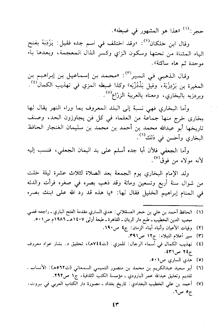 (¬7) أحمد بن علي الخطيب البغدادي: تاريخ بغداد - مصورة دار الكتاب العربي في بيروت، ج5 ص6.