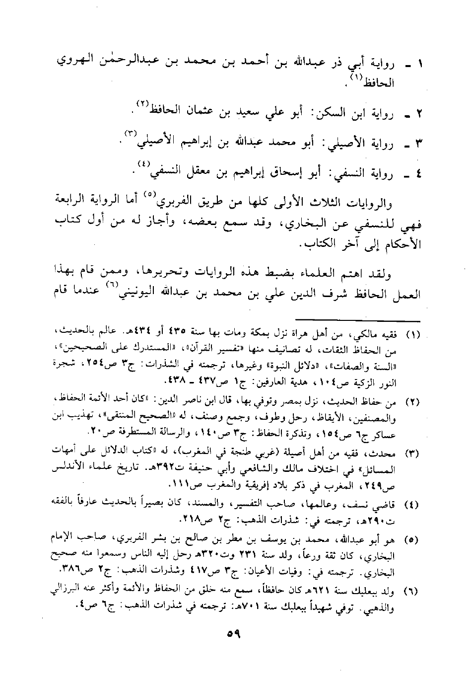 والروايات الثلاث الأولى كلها عن طريق الفربري (¬5) أما الرواية الرابعة فهي للنسفي عن البخاري، وقد سمع بعضه، وأجاز له من أول كتاب الأحكام إلى آخر الكتاب.