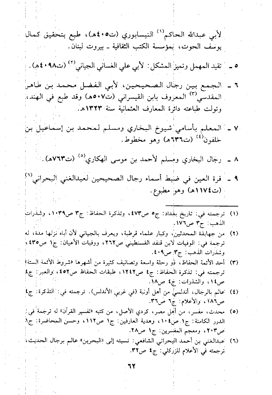 6) الجمع بين رجال الصحيحين، لأبي الفضل محمد بن طاهر المقدسي (¬3) المعروف بابن القيسراني (ت 507هـ) وقد طبع في الهند، وتولت طباعته دائرة المعارف العثمانية سنة 1323هـ.