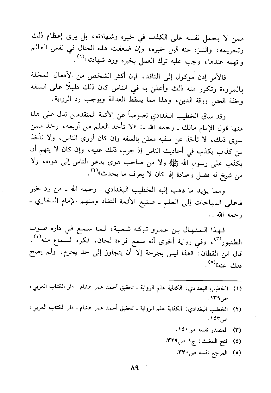 (¬1) الخطيب البغدادي: الكفاية علم الرواية - تحقيق أحمد عمر هاشم - دار الكتاب العربي، ص139.