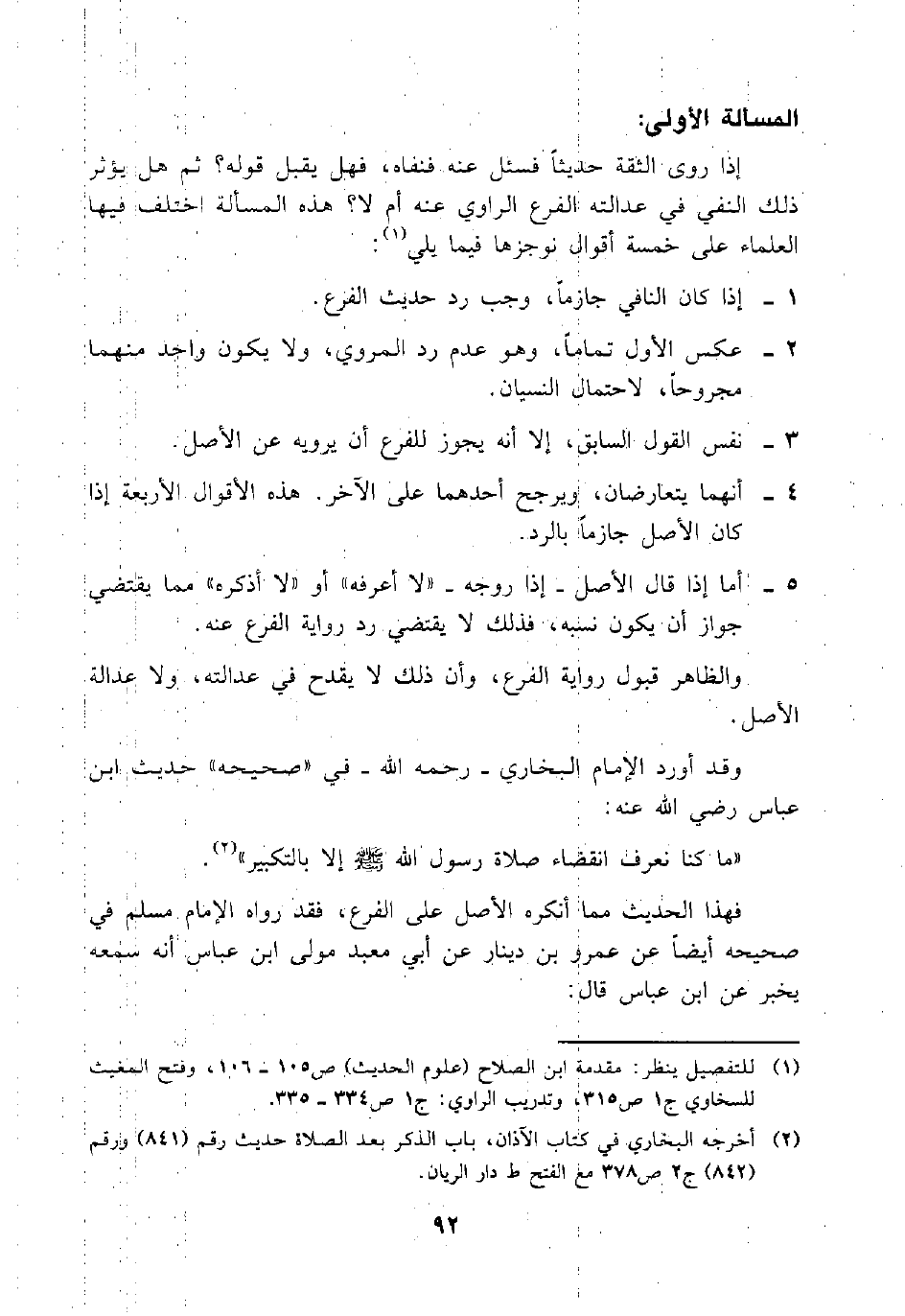 (¬1) للتفصيل ينظر: مقدمة ابن الصلاح (علوم الحديث) ص105 - 106، وفتح المغيث للسخاوي ج1 ص315، وتدريب الراوي: ج1 ص334 - 335.