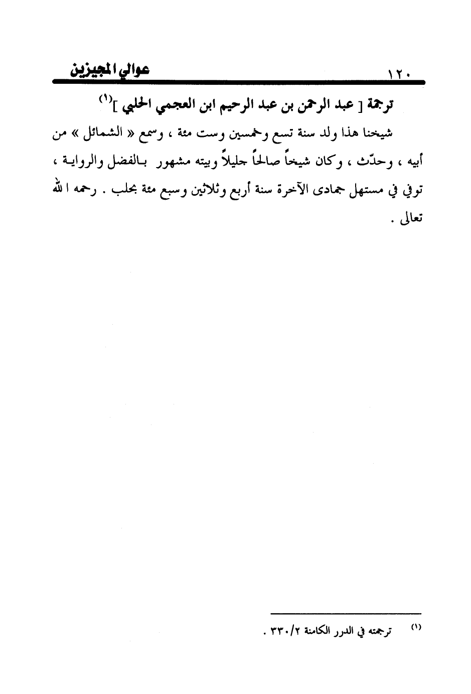 تَرْجَمَةُ عَبْدِ الرَّحْمَنِ بْنِ عَبْدِ الرَّحِيمِ بْنِ الْعَجَمِيِّ الْحَلَبِيِّ.