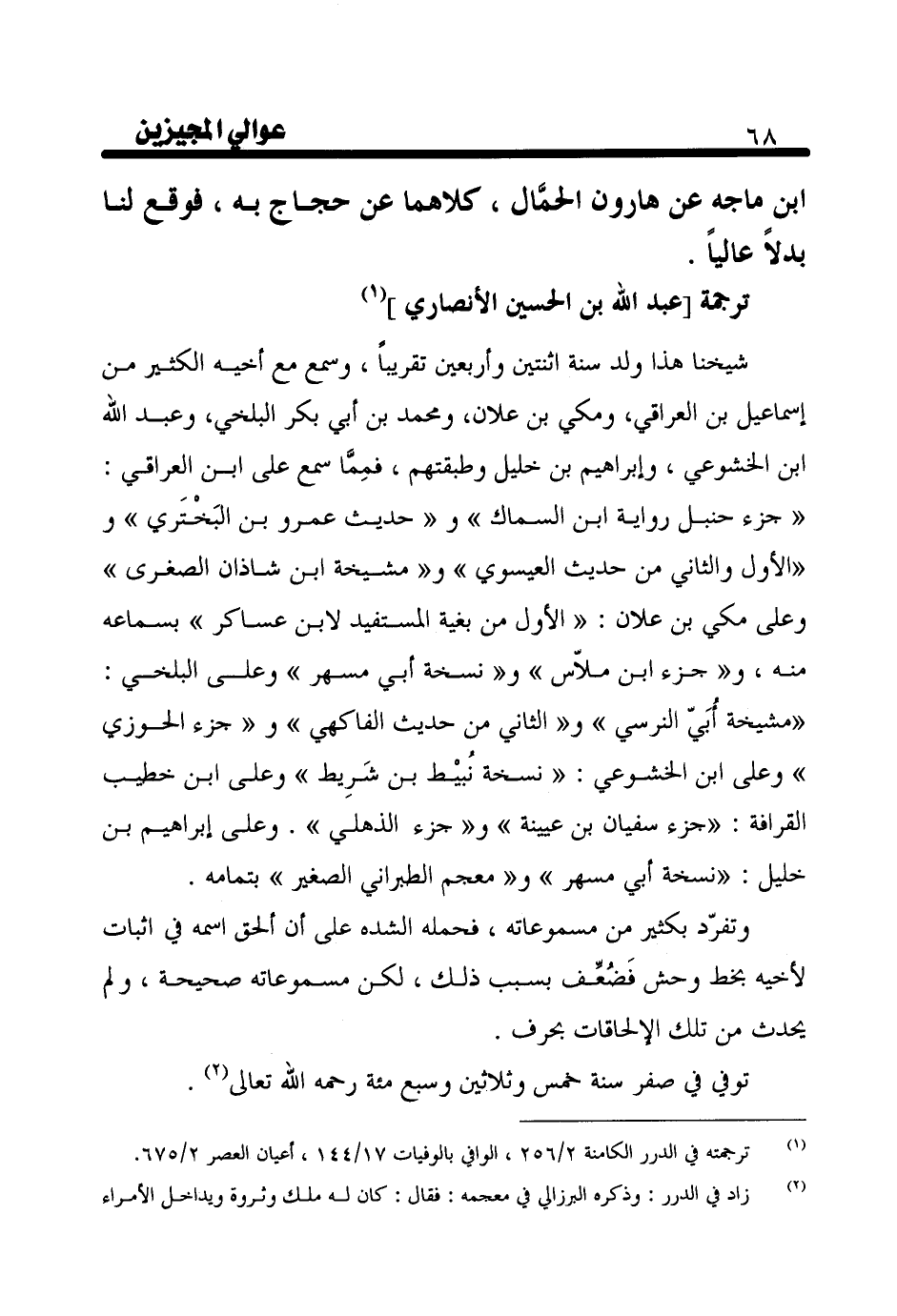تَرْجَمَةُ عَبْدِ اللَّهِ بْنِ الْحُسَيْنِ الْأَنْصَارِيِّ.