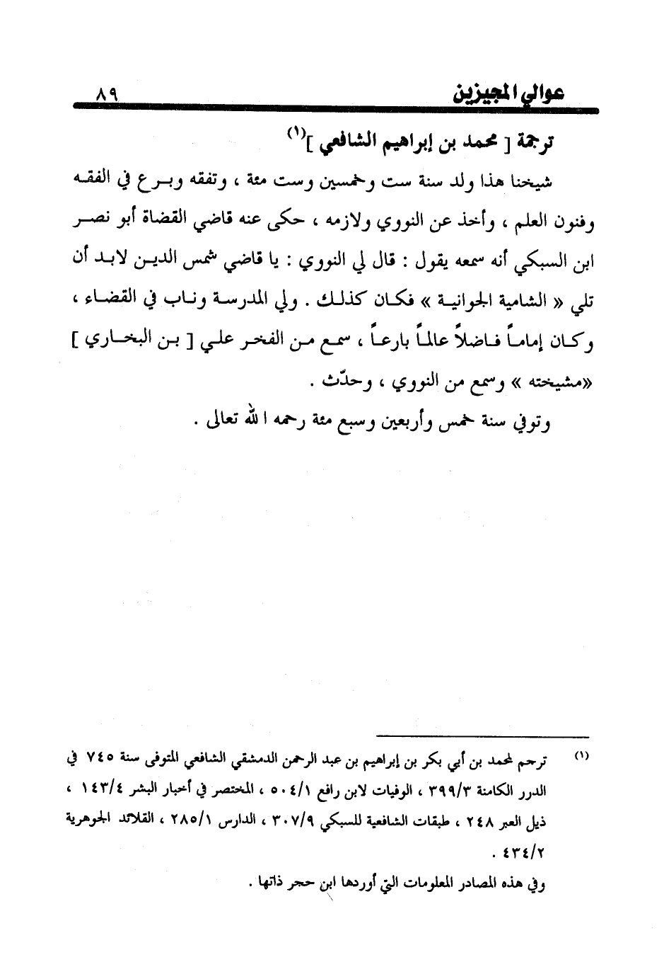 تَرْجَمَةُ مُحَمَّدِ بْنِ إِبْرَاهِيمَ الشَّافِعِيِّ.