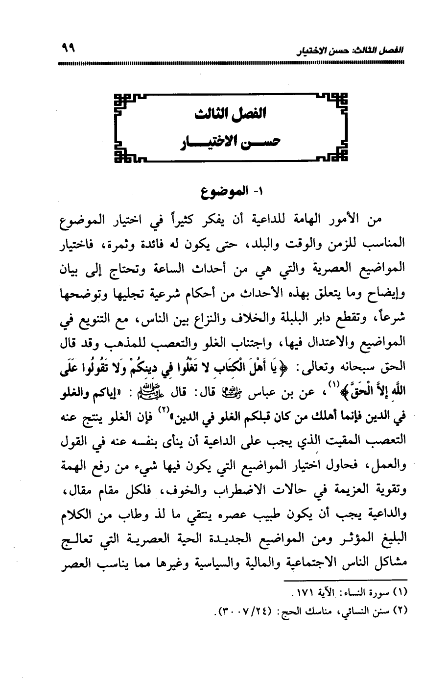 الفصل الثالث: حسن الاختيار: