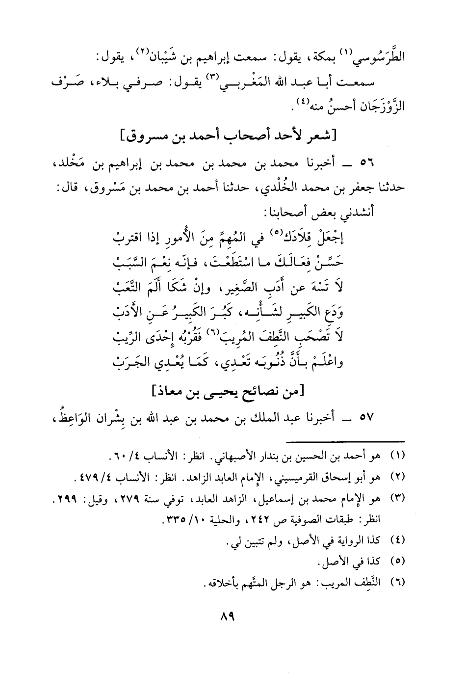 شِعْرٌ لِأَحَدِ أَصْحَابِ أَحْمَدَ بْنِ مَسْرُوقٍ
