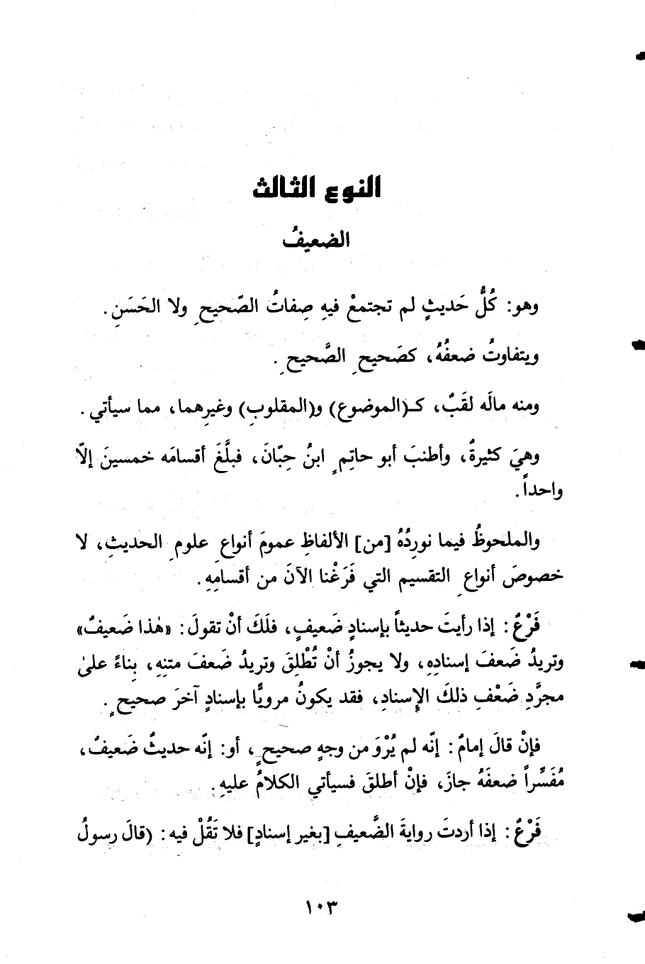 وَهُوَ كل حَدِيث لم تَجْتَمِع فِيهِ صِفَات الصَّحِيح وَلَا الْحسن ويتفاوت 2 ضعفه كصحيح الصَّحِيح