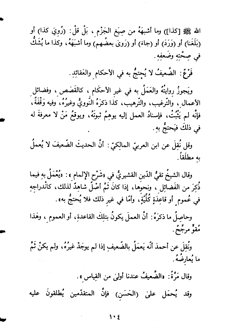 وَقل عَن ابْن الْعَرَبِيّ الْمَالِكِي أَن 6 الحَدِيث الضَّعِيف لَا يعْمل بِهِ مُطلقًا