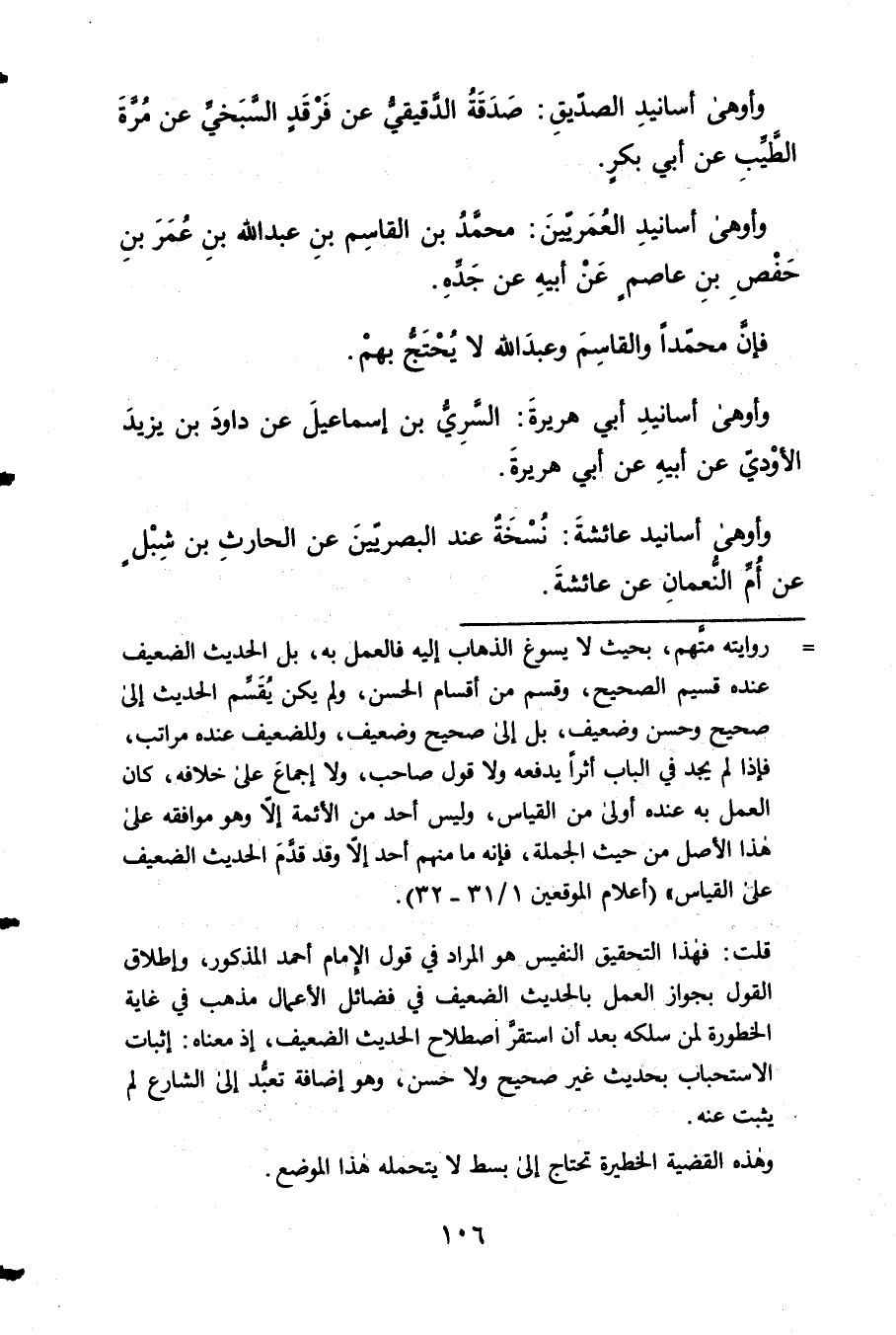 وأوهى أَسَانِيد العمريين مُحَمَّد بن الْقَاسِم بن عبد الله بن عَمْرو بن حَفْص بن عَاصِم عَن أَبِيه 3 عَن جده